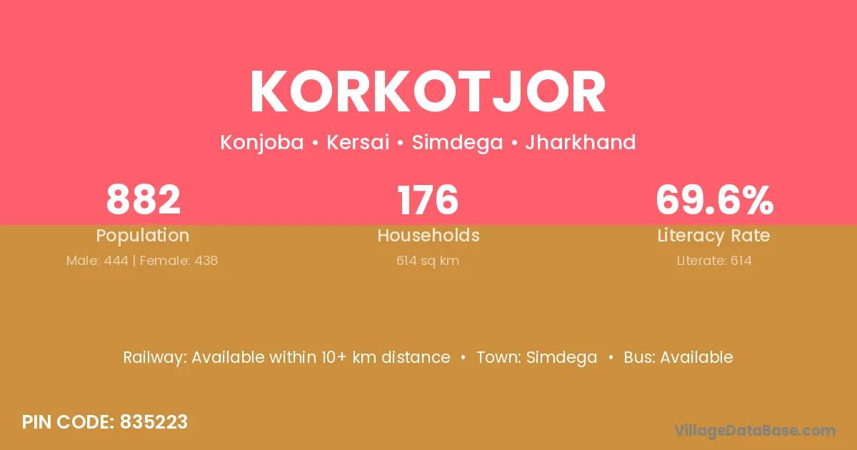 Simdega is the nearest town to Korkotjor village for major economic activities
