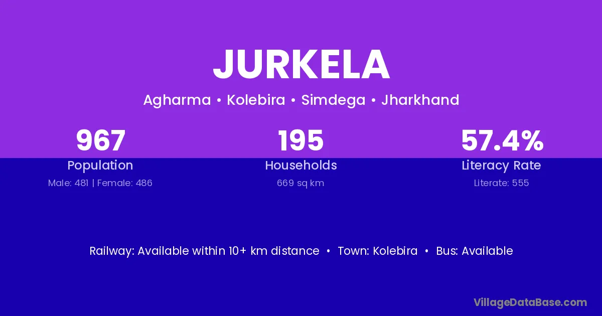 Jurkela village has a total population of 967 people, of which 481 are males and 486 are females.