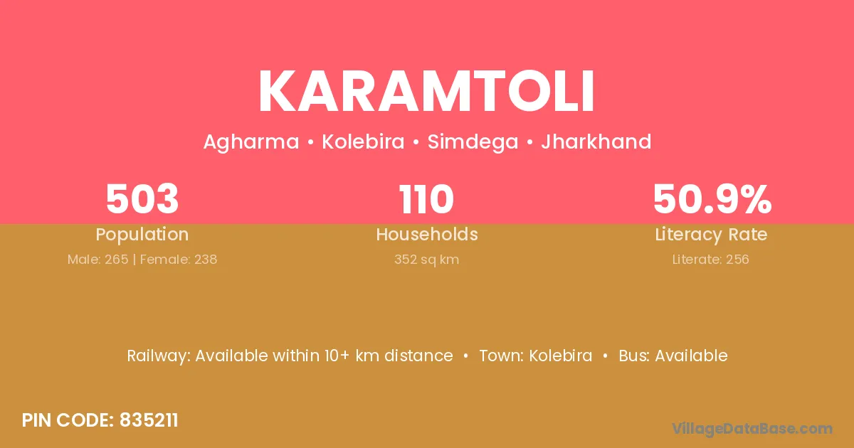 Karamtoli village has a total population of 503 people, of which 265 are males and 238 are females.