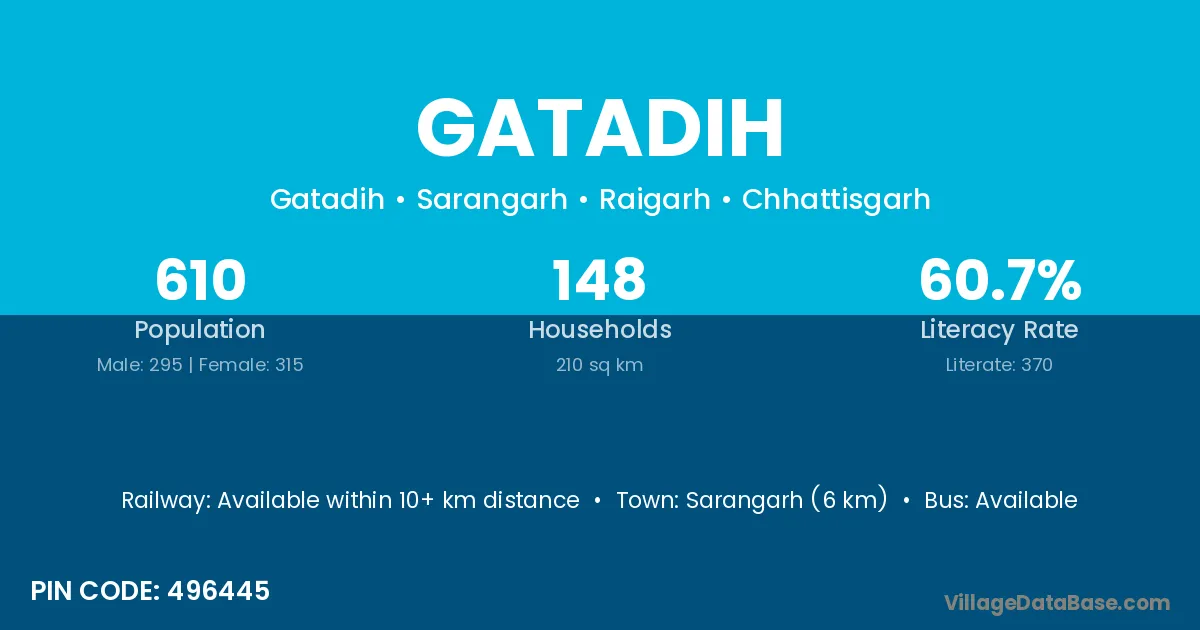 Gatadih village has a total population of 604 people, of which 284 are males and 320 are females.