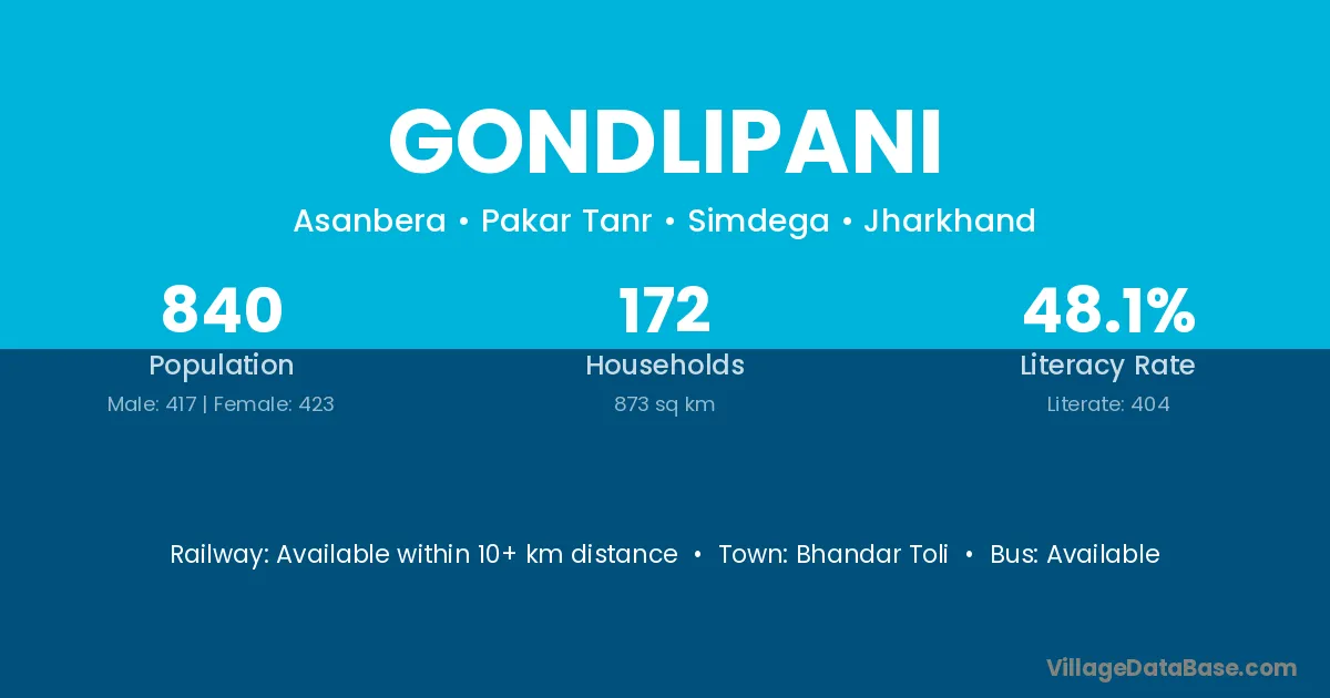 Bhandar Toli is the nearest town to Gondlipani village for major economic activities