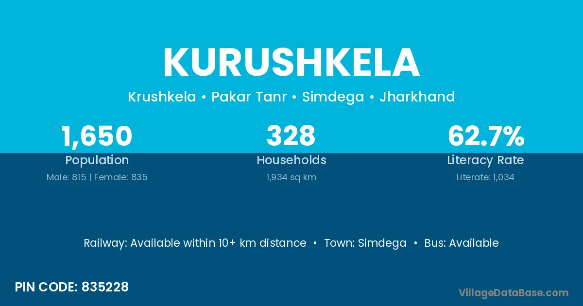 Kurushkela village has a total population of 1,650 people, of which 815 are males and 835 are females.
