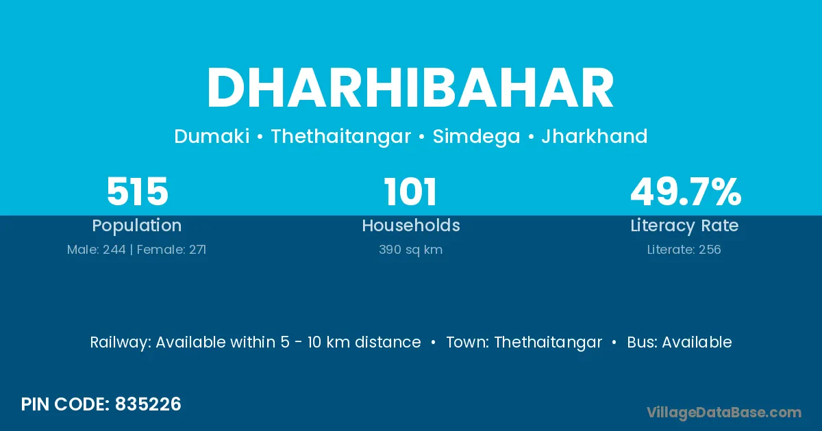 Thethaitangar is the nearest town to Dharhibahar village for major economic activities