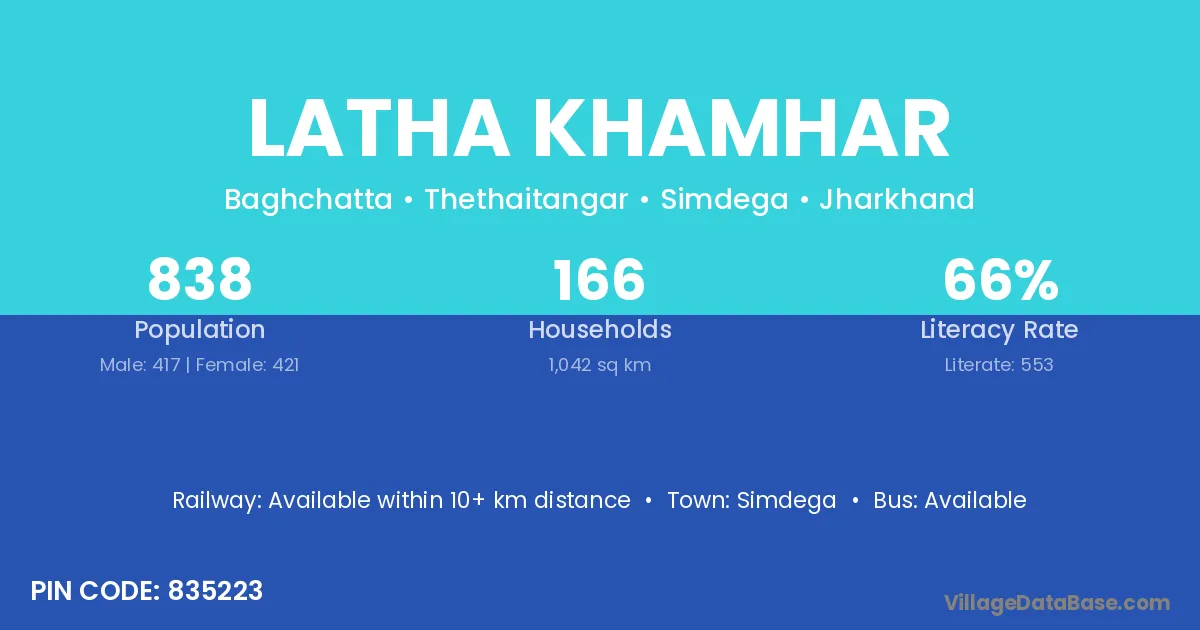 Simdega is the nearest town to Latha Khamhar village for major economic activities