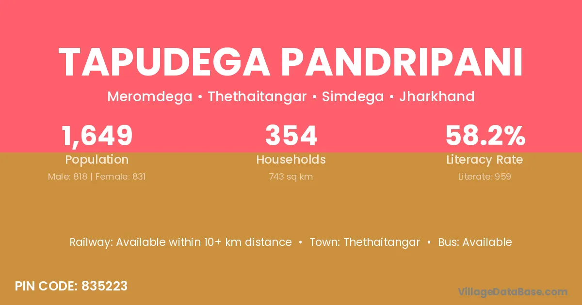 Tapudega Pandripani village is located in the Thethaitangar Subdivision of the Simdega district in Jharkhand .