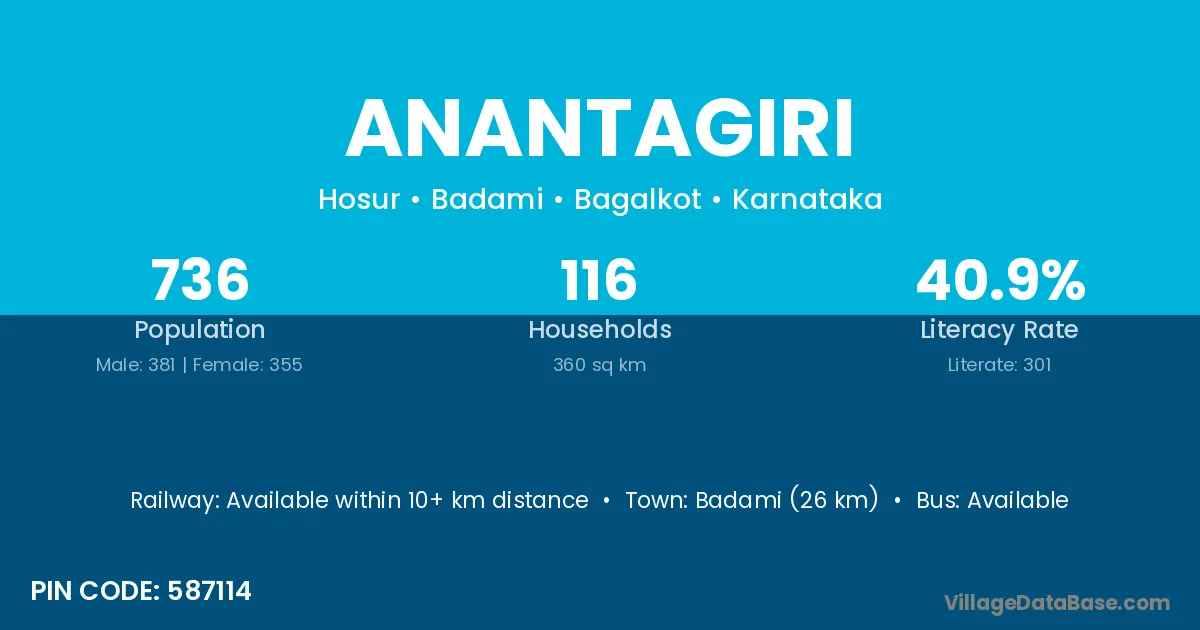 Badami (26 km) is the nearest town to Anantagiri village for major economic activities and is located approximately 26 km away.