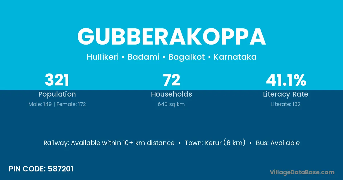 Kerur (6 km) is the nearest town to Gubberakoppa village for major economic activities and is located approximately 6 km away.