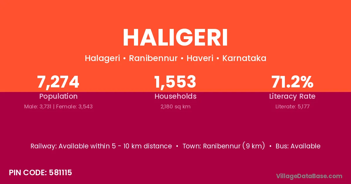 Kerur (10 km) is the nearest town to Haligeri village for major economic activities and is located approximately 10 km away.