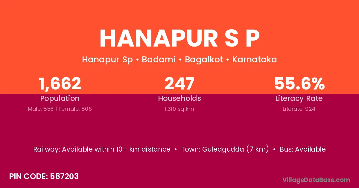 Guledgudda (7 km) is the nearest town to Hanapur S P village for major economic activities and is located approximately 7 km away.