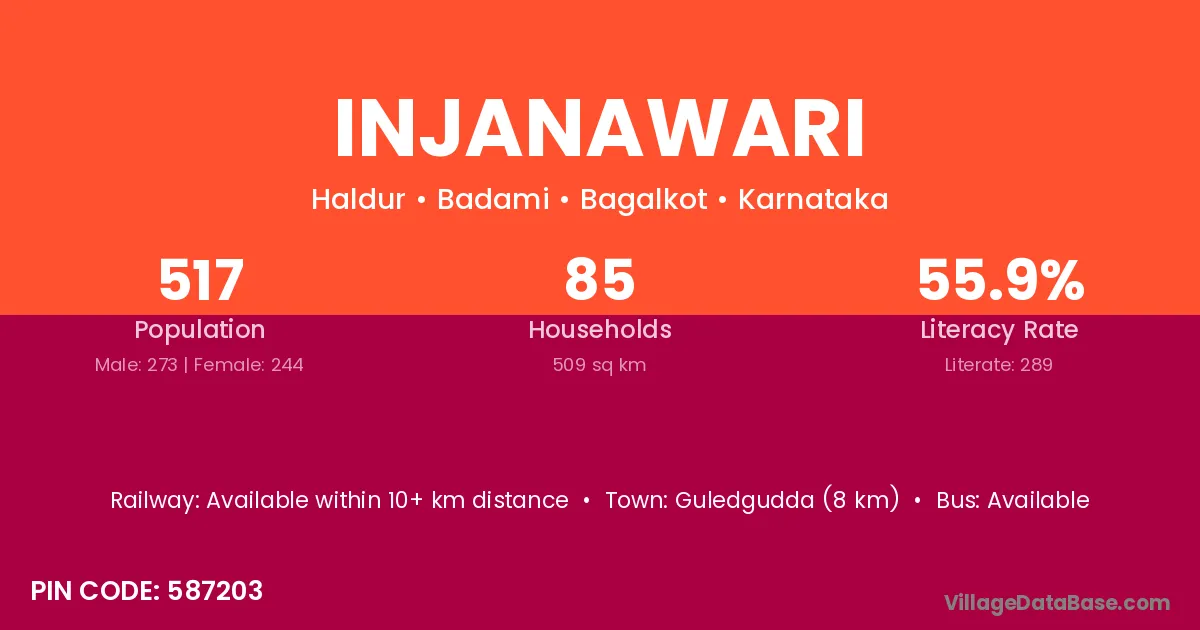 Guledgudda (8 km) is the nearest town to Injanawari village for major economic activities and is located approximately 8 km away.