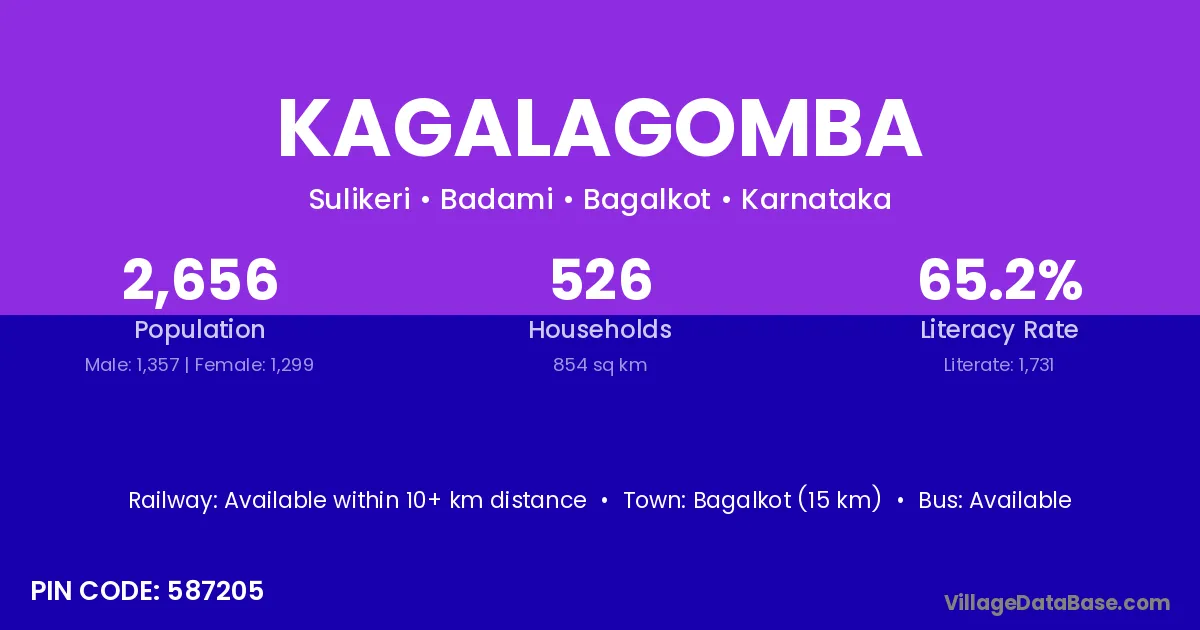 Bagalkot (15 km) is the nearest town to Kagalagomba village for major economic activities and is located approximately 15 km away.