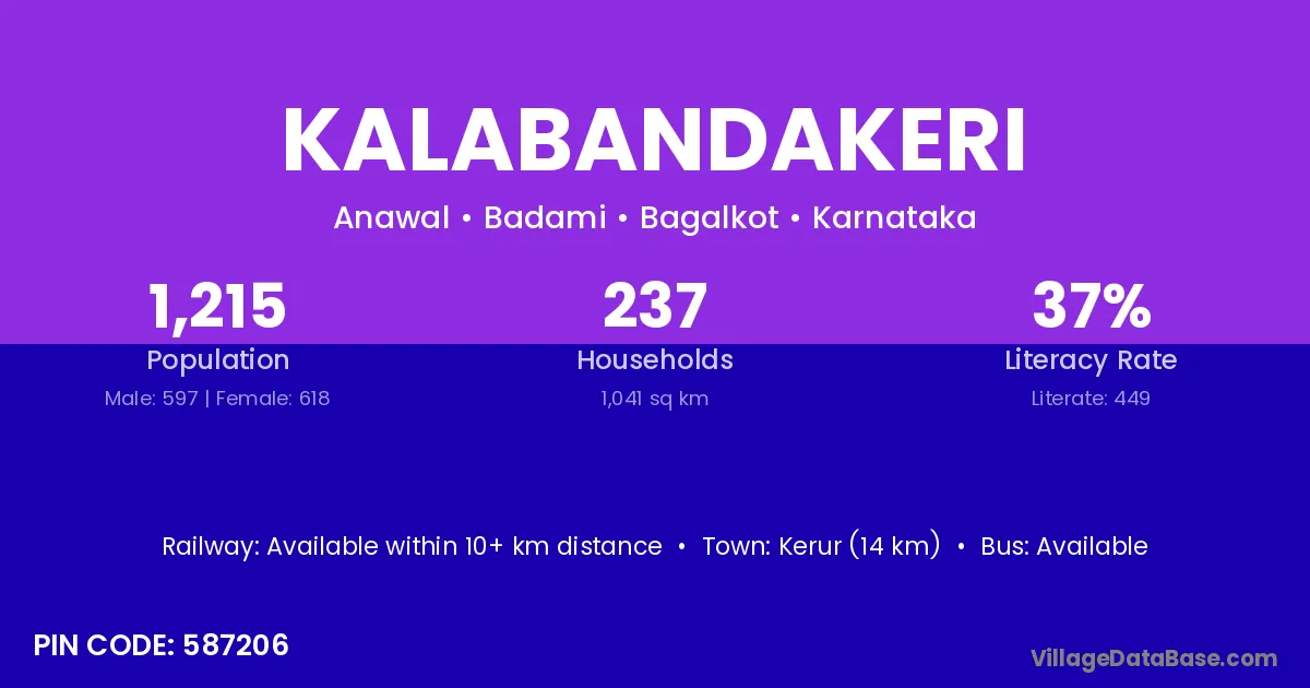 Kerur (14 km) is the nearest town to Kalabandakeri village for major economic activities and is located approximately 14 km away.