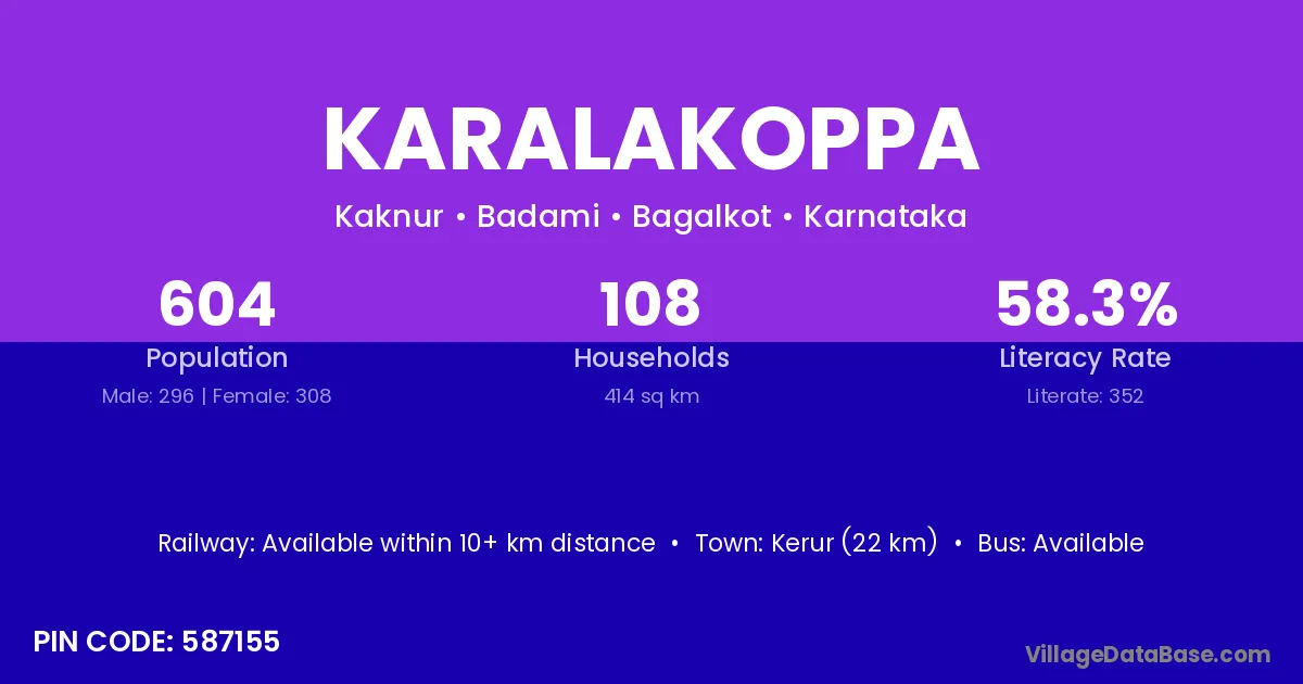 Kerur (22 km) is the nearest town to Karalakoppa village for major economic activities and is located approximately 22 km away.