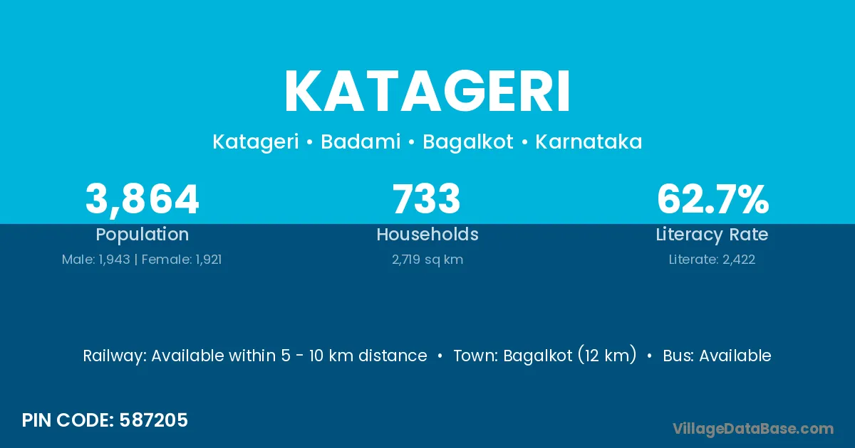 Bagalkot (12 km) is the nearest town to Katageri village for major economic activities and is located approximately 12 km away.