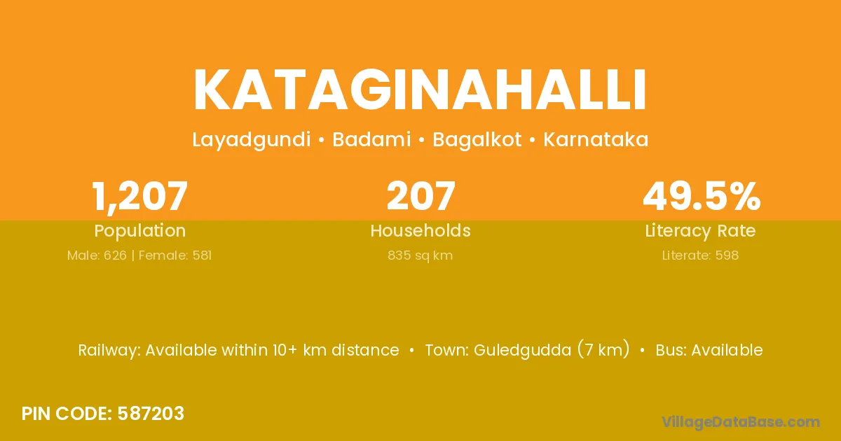 Guledgudda (7 km) is the nearest town to Kataginahalli village for major economic activities and is located approximately 7 km away.