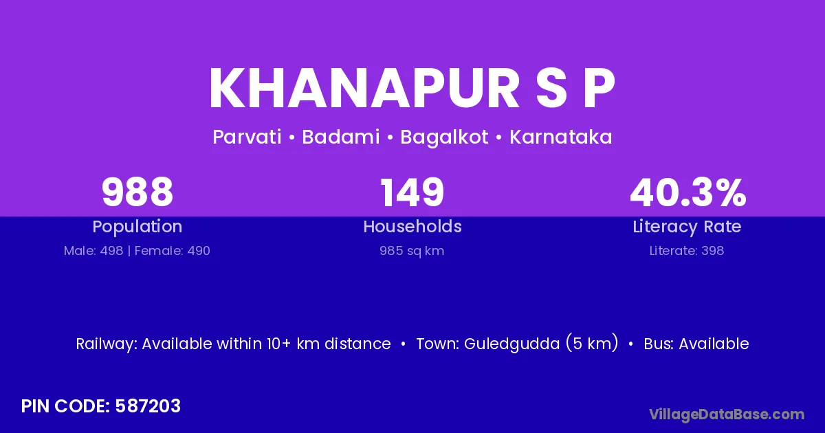 Guledgudda (5 km) is the nearest town to Khanapur S P village for major economic activities and is located approximately 5 km away.
