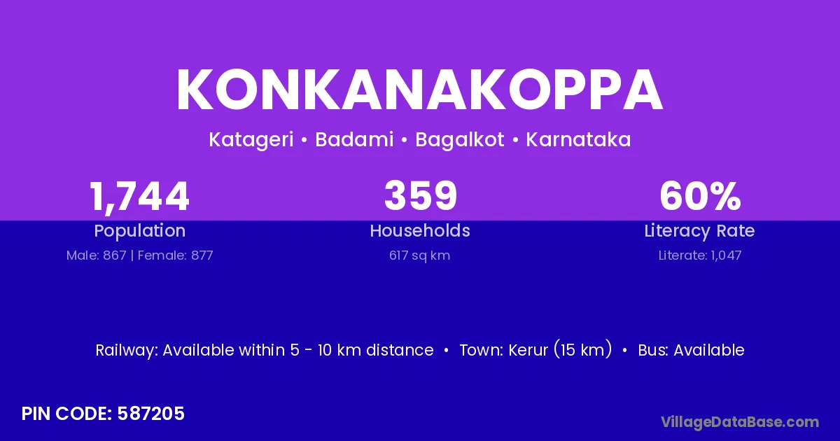 Kerur (15 km) is the nearest town to Konkanakoppa village for major economic activities and is located approximately 15 km away.