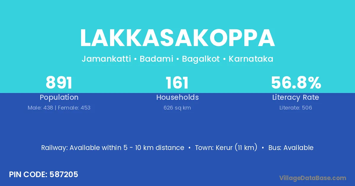 Kerur (11 km) is the nearest town to Lakkasakoppa village for major economic activities and is located approximately 11 km away.