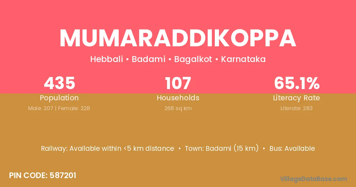 Mumaraddikoppa village has a total population of 435 people, of which 207 are males and 228 are females.