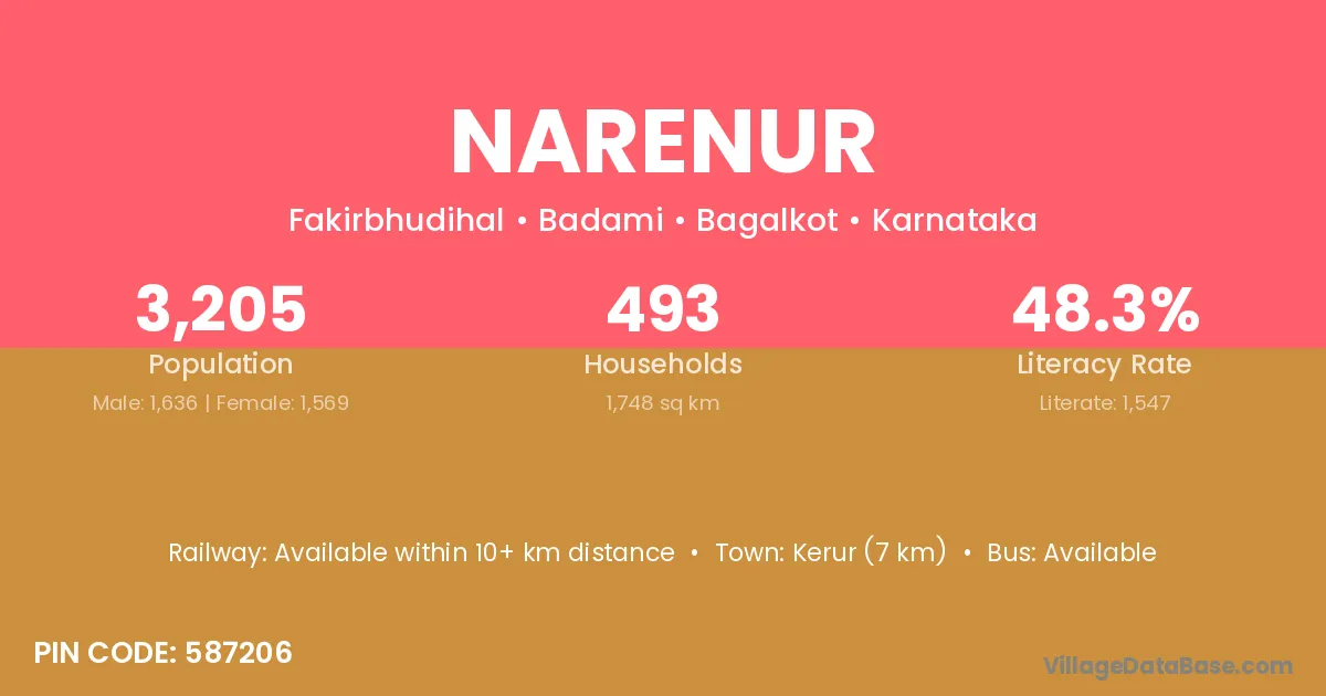 Kerur (7 km) is the nearest town to Narenur village for major economic activities and is located approximately 7 km away.