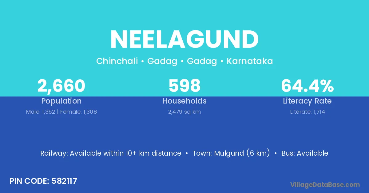 Kerur (11 km) is the nearest town to Neelagund village for major economic activities and is located approximately 11 km away.