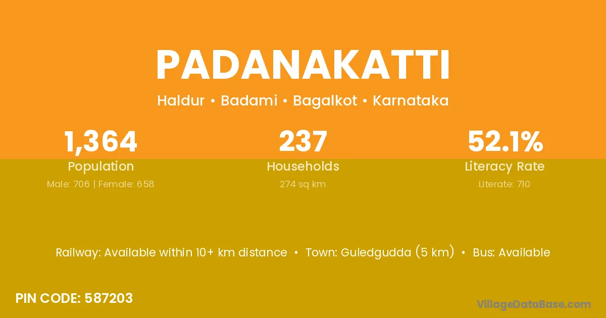 Guledgudda (5 km) is the nearest town to Padanakatti village for major economic activities and is located approximately 5 km away.