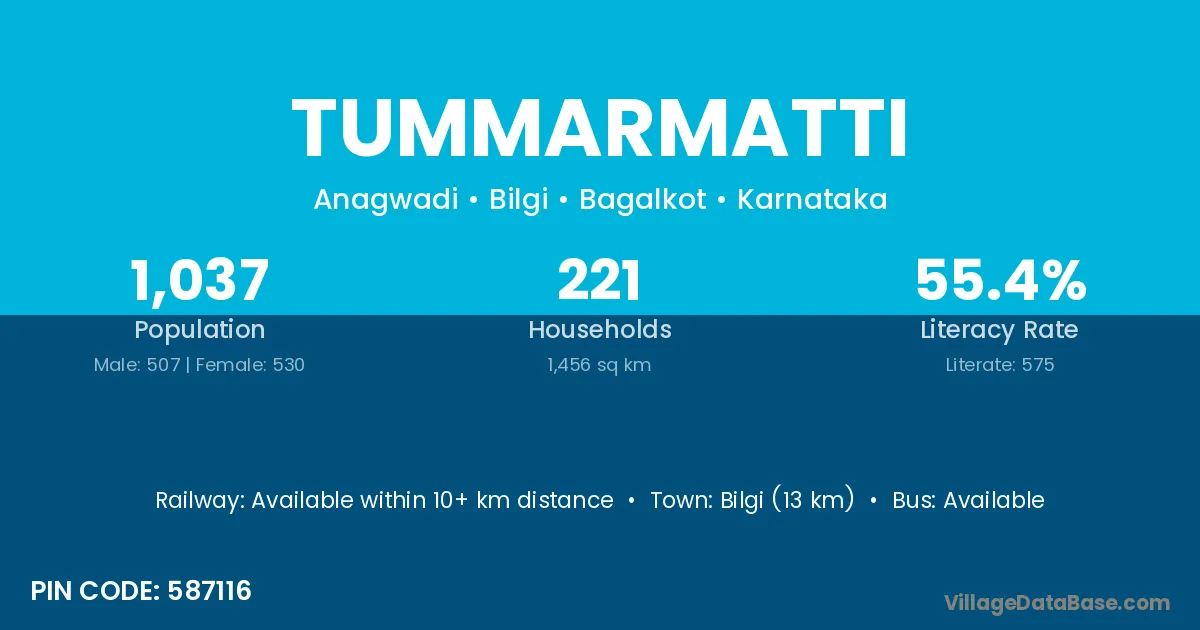 Tummarmatti village has a total population of 1,037 people, of which 507 are males and 530 are females.