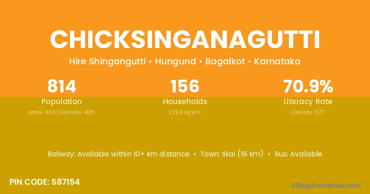 Ilkal (16 km) is the nearest town to Chicksinganagutti village for major economic activities and is located approximately 16 km away.