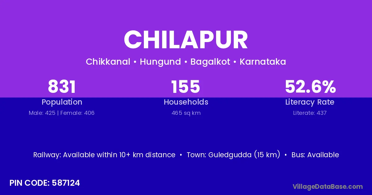 Guledgudda (15 km) is the nearest town to Chilapur village for major economic activities and is located approximately 15 km away.