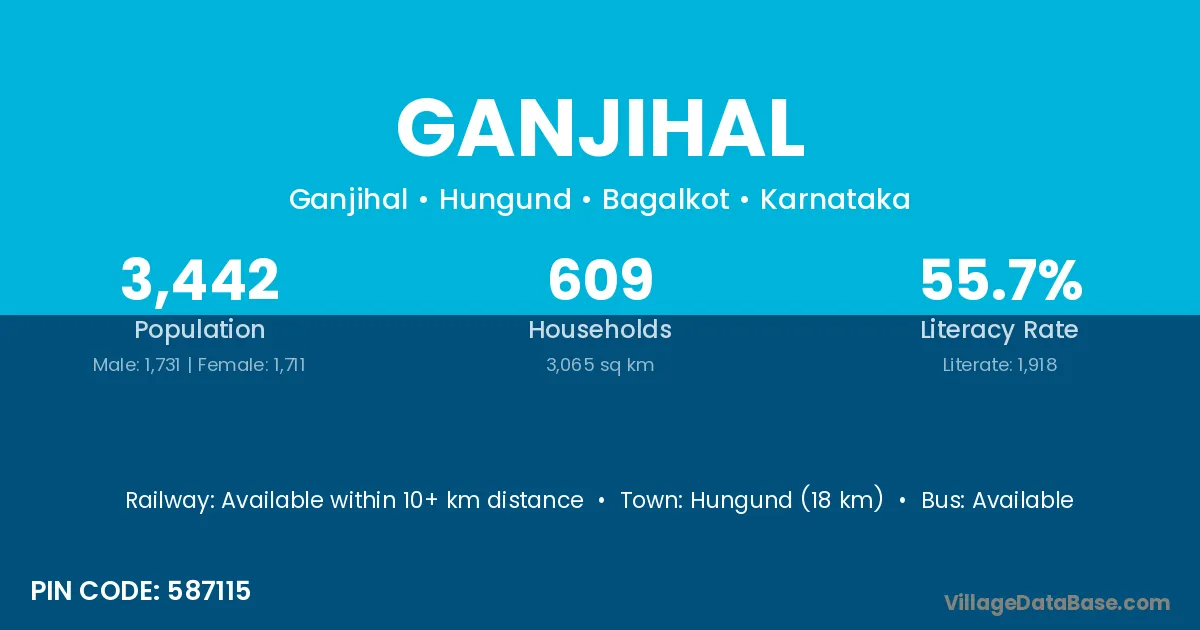 Hungund (18 km) is the nearest town to Ganjihal village for major economic activities and is located approximately 18 km away.