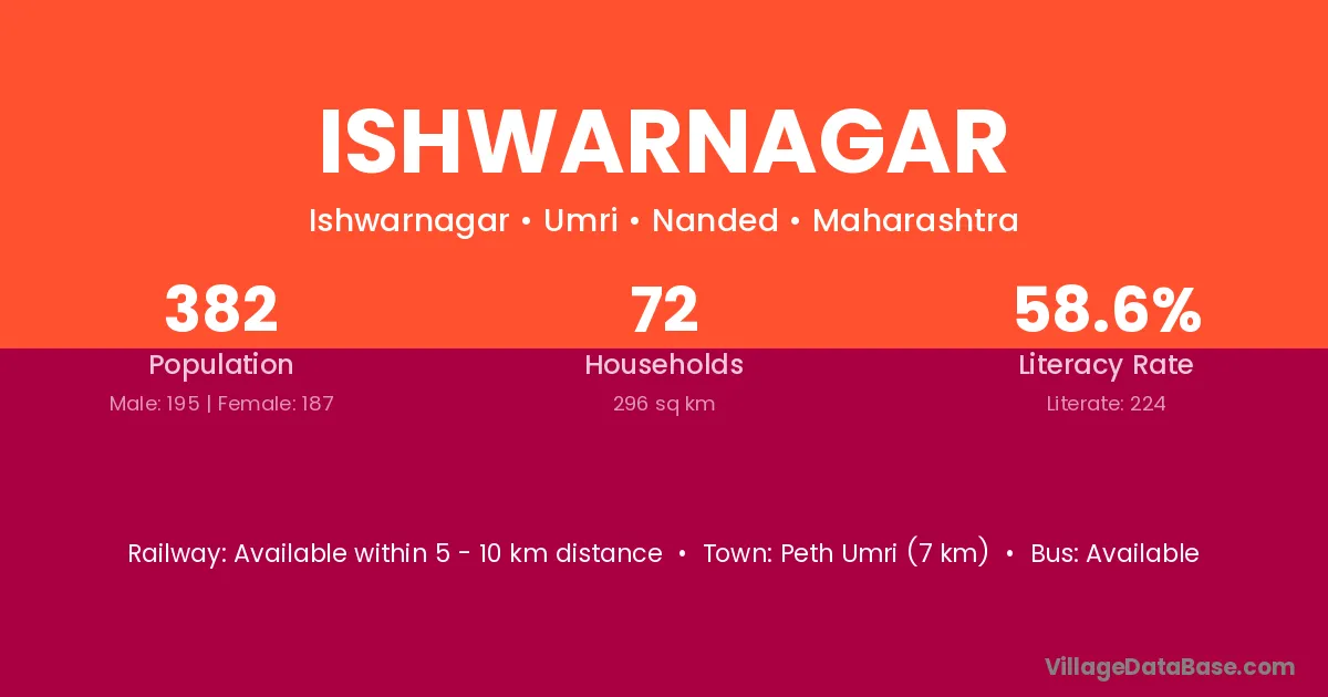 Ishwarnagar village has a total population of 3,891 people, of which 1,942 are males and 1,949 are females.