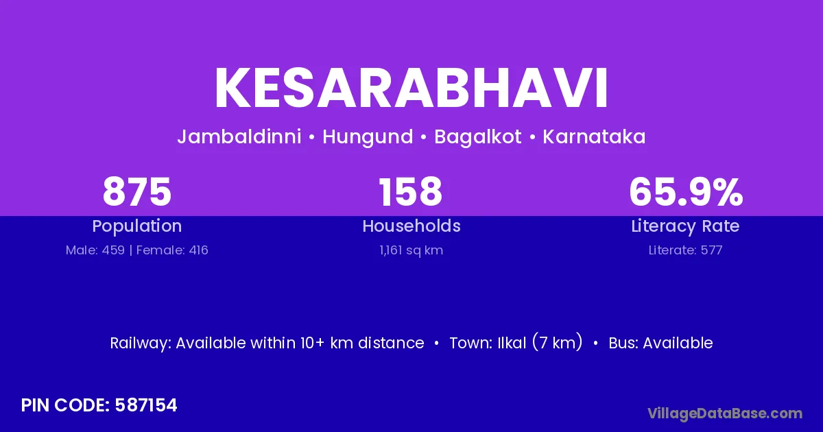 According to Census 2011 information, the village code of Kesarabhavi village is 587154.