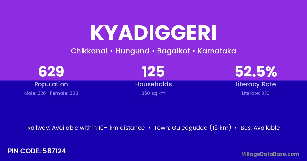 Guledgudda (15 km) is the nearest town to Kyadiggeri village for major economic activities and is located approximately 15 km away.