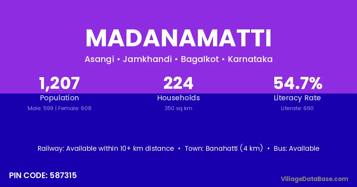 Banahatti (4 km) is the nearest town to Madanamatti village for major economic activities and is located approximately 4 km away.