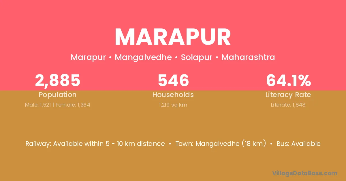 Marapur village has a total population of 3,147 people, of which 1,568 are males and 1,579 are females.