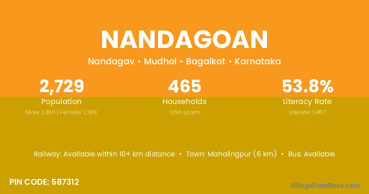 Mahalingpur (6 km) is the nearest town to Nandagoan village for major economic activities and is located approximately 6 km away.