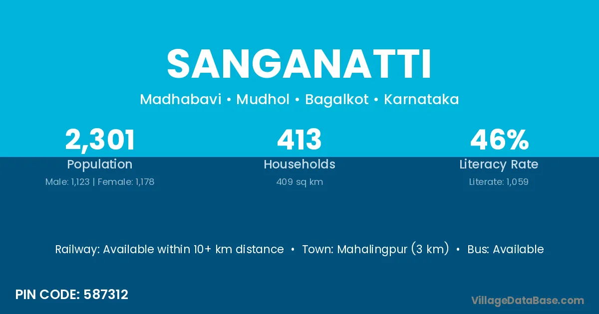 Mahalingpur (3 km) is the nearest town to Sanganatti village for major economic activities and is located approximately 3 km away.