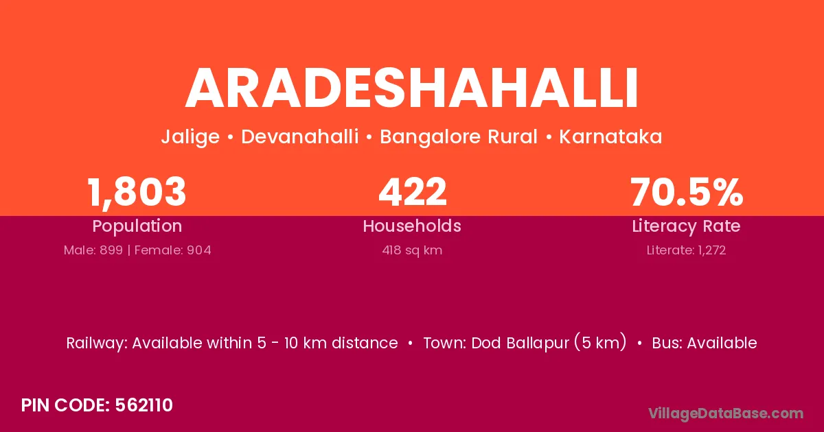 Dod Ballapur (5 km) is the nearest town to Aradeshahalli village for major economic activities and is located approximately 5 km away.