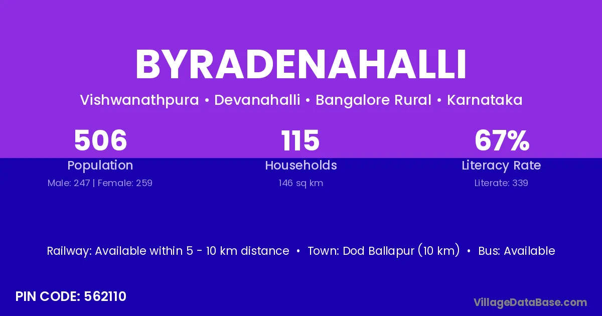 Byradenahalli village has a total population of 506 people, of which 247 are males and 259 are females.