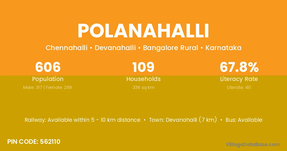 Devanahalli (7 km) is the nearest town to Polanahalli village for major economic activities and is located approximately 7 km away.