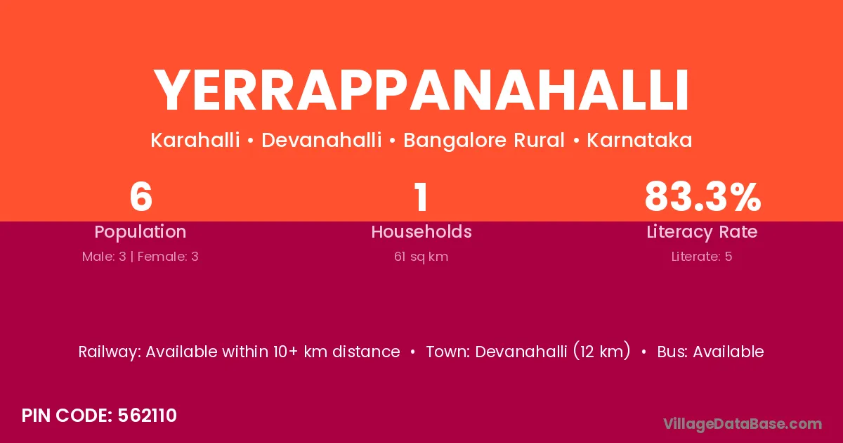 Yerrappanahalli village has a total population of 6 people, of which 3 are males and 3 are females.