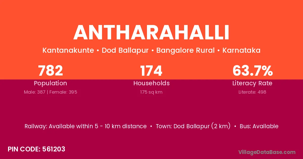 Dod Ballapur (2 km) is the nearest town to Antharahalli village for major economic activities and is located approximately 2 km away.