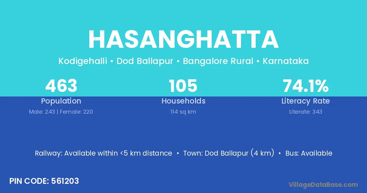 Dod Ballapur (4 km) is the nearest town to Hasanghatta village for major economic activities and is located approximately 4 km away.
