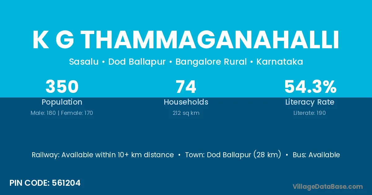 K G Thammaganahalli village has a total population of 350 people, of which 180 are males and 170 are females.
