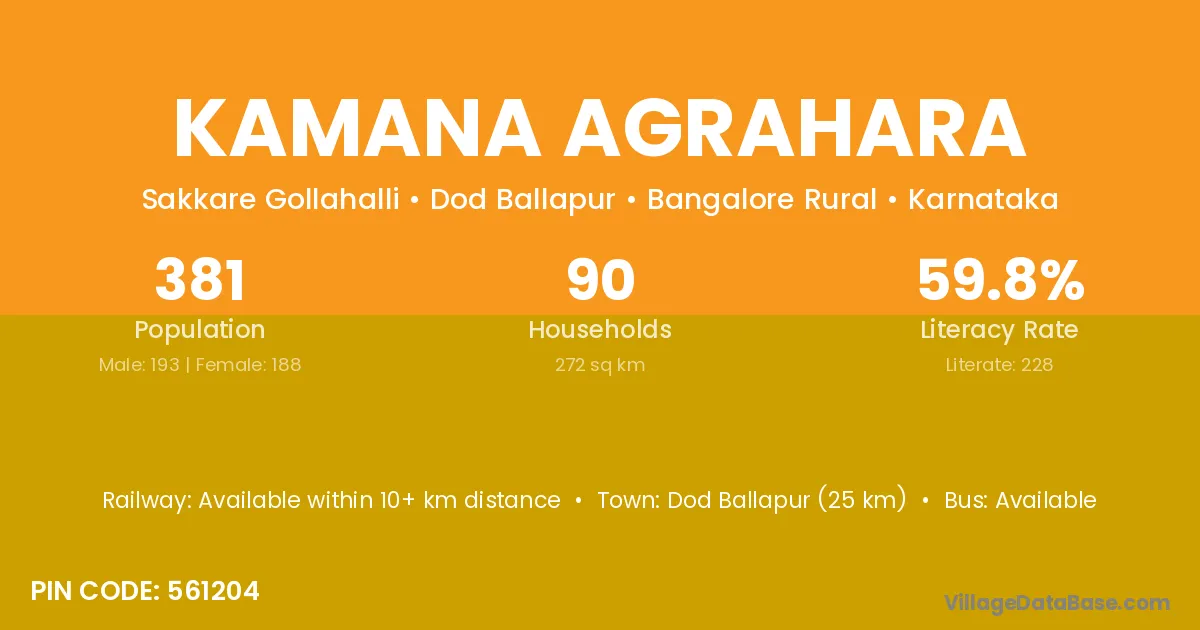 Dod Ballapur (25 km) is the nearest town to Kamana Agrahara village for major economic activities and is located approximately 25 km away.