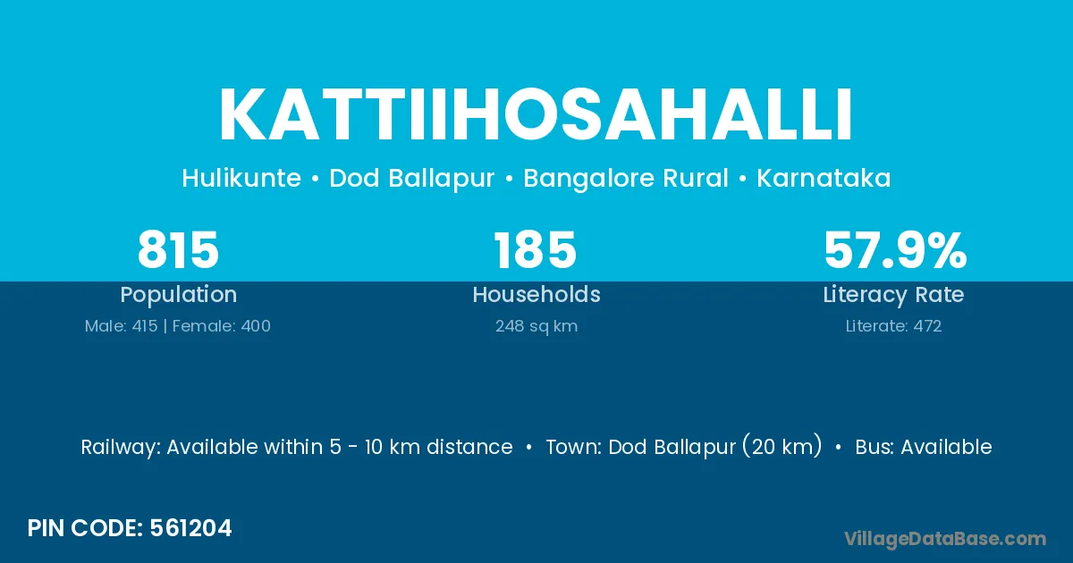 Dod Ballapur (20 km) is the nearest town to Kattiihosahalli village for major economic activities and is located approximately 20 km away.