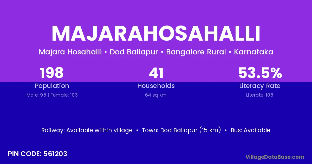 Dod Ballapur (15 km) is the nearest town to Majarahosahalli village for major economic activities and is located approximately 15 km away.