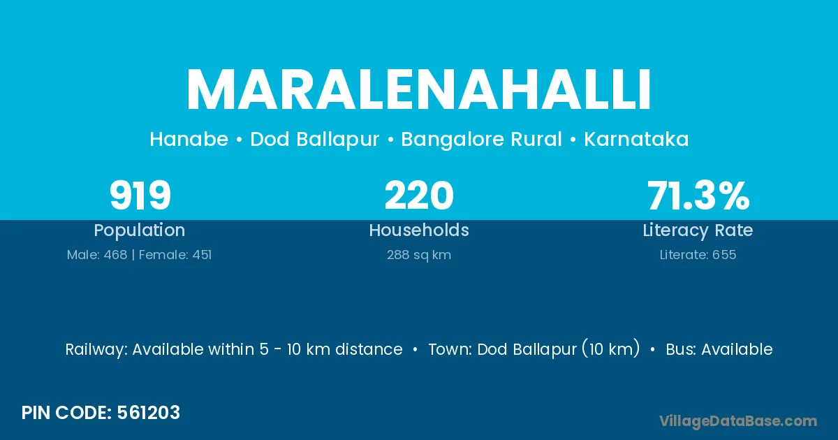 Dod Ballapur (10 km) is the nearest town to Maralenahalli village for major economic activities and is located approximately 10 km away.