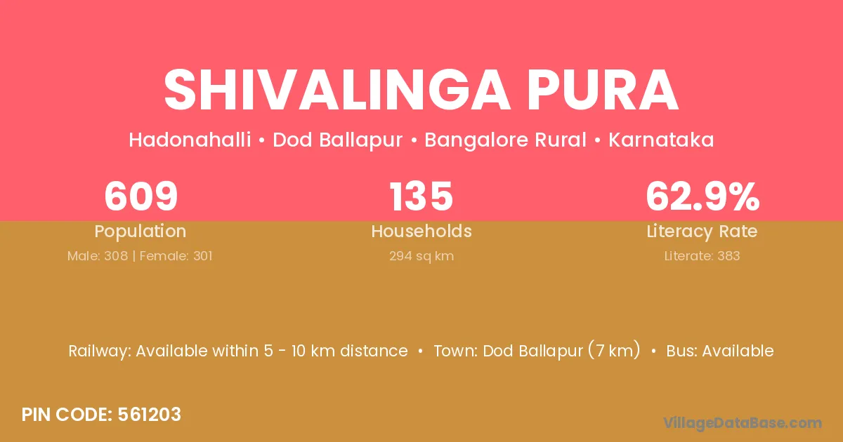 Dod Ballapur (7 km) is the nearest town to Shivalinga Pura village for major economic activities and is located approximately 7 km away.