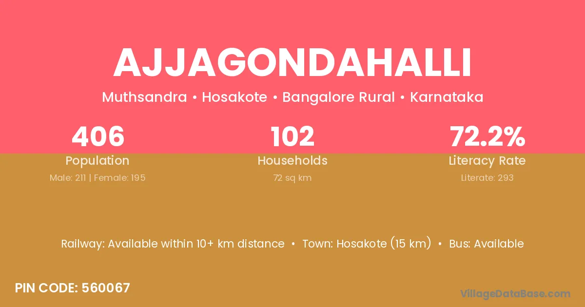 Hosakote (15 km) is the nearest town to Ajjagondahalli village for major economic activities and is located approximately 15 km away.